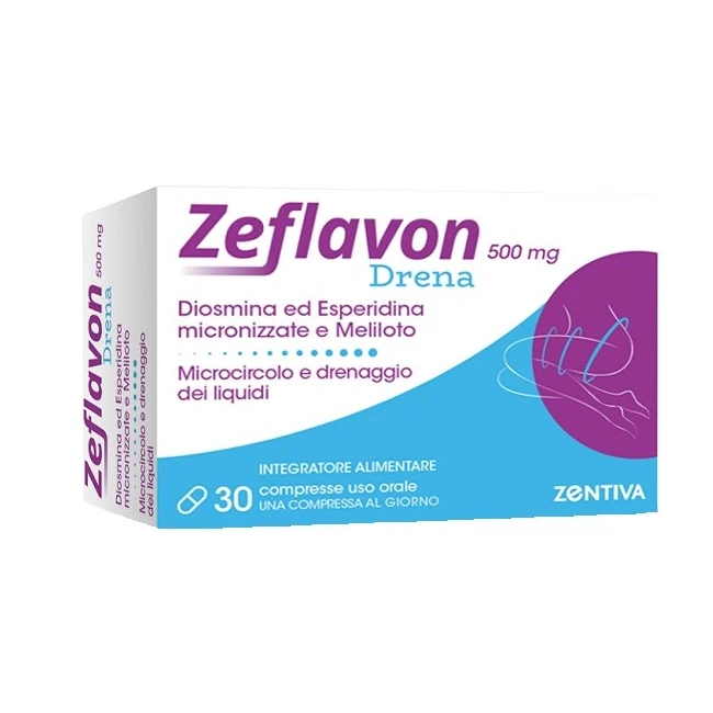 Zeflavon Drena contiene: - Diosmina micronizzata: 900 mg per dose giornaliera - Esperidina micronizzata: 100 mg per dose giornaliera - Estratto di Meliloto: 100 mg per dose giornalieraAdatto per