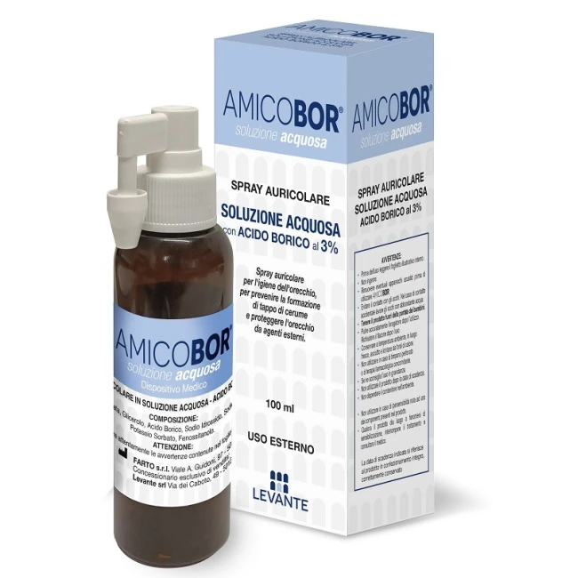 Amicobor è un innovativo spray auricolare progettato per mantenere l'igiene dell'orecchio, prevenire la formazione del tappo di cerume e proteggere l'orecchio da agenti esterni nocivi.A cosa serve