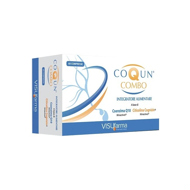 Visufarma Coqun Combo è un integratore alimentare specificamente formulato per supportare la salute cognitiva e il benessere energetico, grazie alla presenza di coenzima Q10 e citicolina (Cognizin).A cosa serve