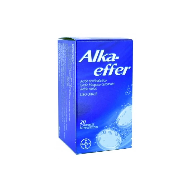 Posologia Adulti ALKAEFFER deve essere sempre sciolto completamente in acqua prima dell'assunzione, che deve avvenire a stomaco pieno: 1 o 2 compresse come dose singola in un bicchiere d'acqua, ripetendo, se necessario, la dose ad intervalli di 4-8 ore fino a 4 volte al giorno. Non superare mai il dosaggio giornaliero massimo di 8 compresse.Utilizzare sempre il dosaggio minimo efficace ed aumentarlo solo se non è sufficiente ad alleviare i sintomi (dolore o febbre). Usare il medicinale per il periodo più breve possibile, non assumere il prodotto per più di 3- 5 giorni senza il parere del medico. I soggetti maggiormente esposti al rischio di effetti indesiderati gravi, che possono usare il farmaco solo se prescritto dal medico, devono seguirne scrupolosamente le istruzioni (vedere paragrafo 4.4). Modo di somministrazione Assumere il medicinale preferibilmente dopo i pasti principali o, comunque, a stomaco pieno. Consultare il medico nel caso in cui i sintomi persistano. Popolazioni speciali Popolazione pediatrica ALKAEFFER non è indicato per l’uso nella popolazione pediatrica (vedere paragrafo 4.3) Anziani I pazienti anziani devono attenersi ai dosaggi minimi sopra indicati. Pazienti con compromissione della funzione epatica L’acido acetilsalicilico deve essere usato con cautela nei pazienti con compromissione della funzione epatica (vedere paragrafo 4.4). Pazienti con compromissione della funzione renale L’acido acetilsalicilico deve essere usato con cautela nei pazienti con compromissione della funzione renale (vedere paragrafo 4.4).