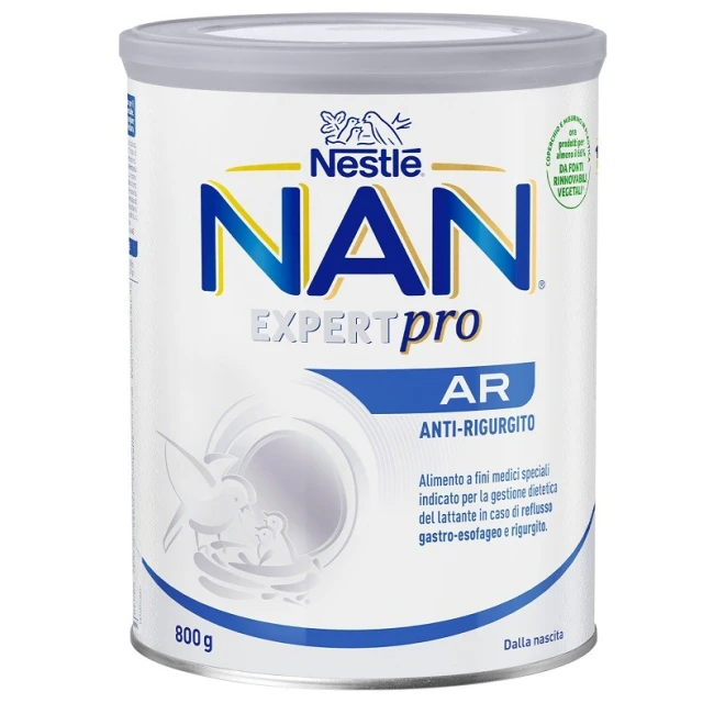 Nestlé NAN AR 800 g è un alimento speciale indicato per la gestione dietetica dei lattanti con patologie gastro-esofagee, fornendo nutrimento completo nei primi sei mesi di vita.