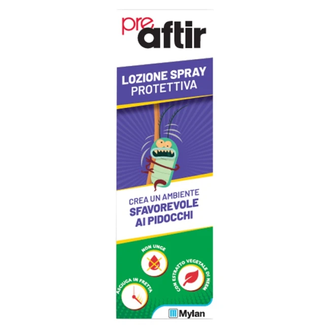 La Lozione Spray Protettiva Meda Pharma Preaftir è un complemento cosmetico formulato con estratto vegetale di neem, progettato specificamente per proteggere e mantenere in ottimo stato i capelli. Questa lozione crea un ambiente sfavorevole all'insediamento dei pidocchi e migliora la pettinabilità, facilitando la rimozione meccanica delle eventuali lendini presenti.