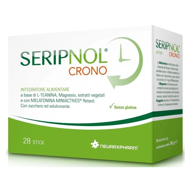 Seripnol Crono è disponibile in pratici stick, facili da sciogliere in acqua, e non contiene glutine. Ogni stick fornisce una dose bilanciata di ingredienti attivi, rendendolo un’ottima scelta per chi cerca un supporto naturale al riposo notturno.Adatto per