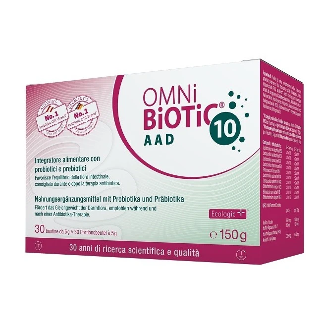 OMNi-BiOTiC 10 AAD è un integratore alimentare progettato per supportare l'equilibrio della flora intestinale, particolarmente utile durante e dopo un trattamento antibiotico.
