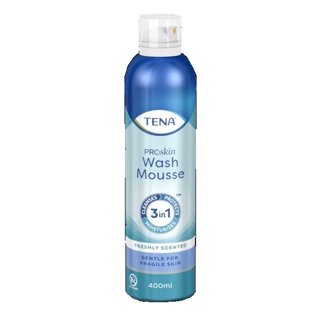 TENA Proskin Wash Mousse è un mousse detergente 3in1, progettato specificamente per la detersione delle pelli mature e fragili. È ideale per l'uso quotidiano, specialmente in caso di incontinenza, offrendo un'alternativa delicata all'acqua e sapone.