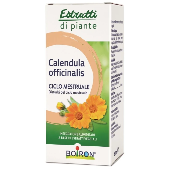 L'Estratto Idroalcolico di Calendula Boiron è un integratore alimentare a base di estratti vegetali, particolarmente indicato per contrastare i disturbi del ciclo mestruale e supportare la salute della pelle.A cosa serve