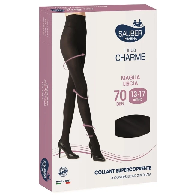 Studiati per garantire un’azione tonificante e preventiva contro la comparsa delle varici, Sauber Charme Supercoprenti 70 Denari Nero taglia 4 a compressione graduata aiutano a ridurre il gonfiore moderato e alleviare la fastidiosa sensazione di gambe pesanti o soggette a formicolii. Con una compressione di 13-17 mmHg localizzata alla caviglia e progressivamente decrescente verso il polpaccio e la coscia, favoriscono la corretta circolazione venosa. Realizzati con filato di alta qualità ad elasticità tridimensionale, garantiscono una maggiore durata, libertà di movimento e un effetto estetico levigato e uniforme.