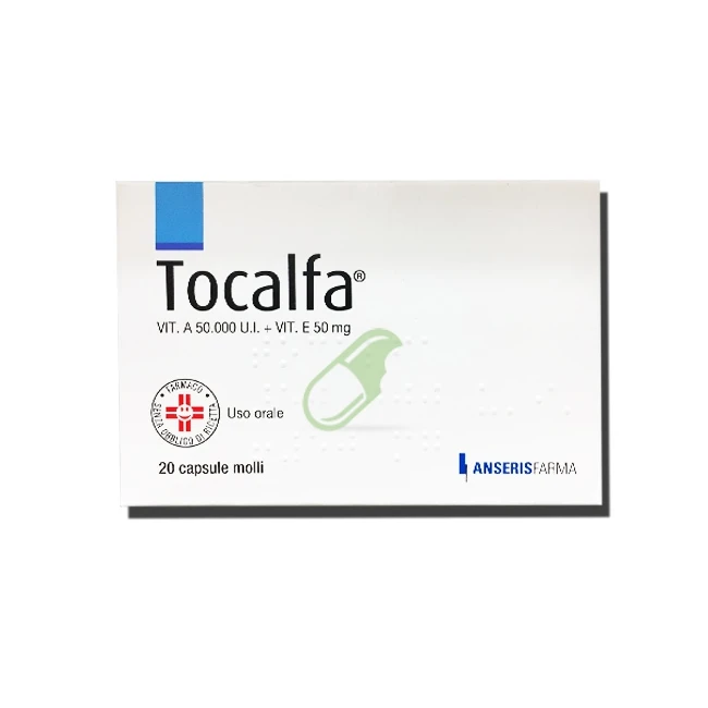 Tocalfa 50000 UI + 50 mg capsule molli è un medicinale a base di vitamina A e vitamina E, la cui combinazione sinergica vitamine contribuisce al mantenimento della salute della pelle, degli occhi e delle funzioni immunitarie, oltre a svolgere un’azione antiossidante protettiva nei confronti delle cellule.