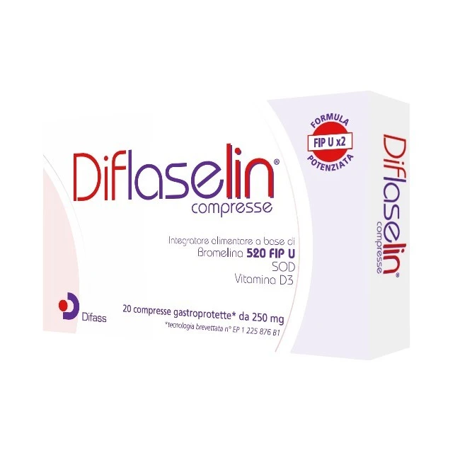 Dettagli Difass International Diflaselin Compresse Gastroprotette 250 mg - Integratore Alimentare con Bromelina, SOD e Vitamina D