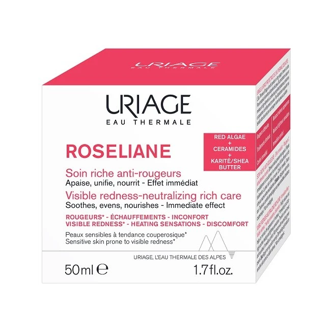 Uriage Roseliane Crema Ricca è concepita per trattare gli arrossamenti e la sensibilità della pelle secca, offrendo una protezione duratura contro la couperose e la rosacea.