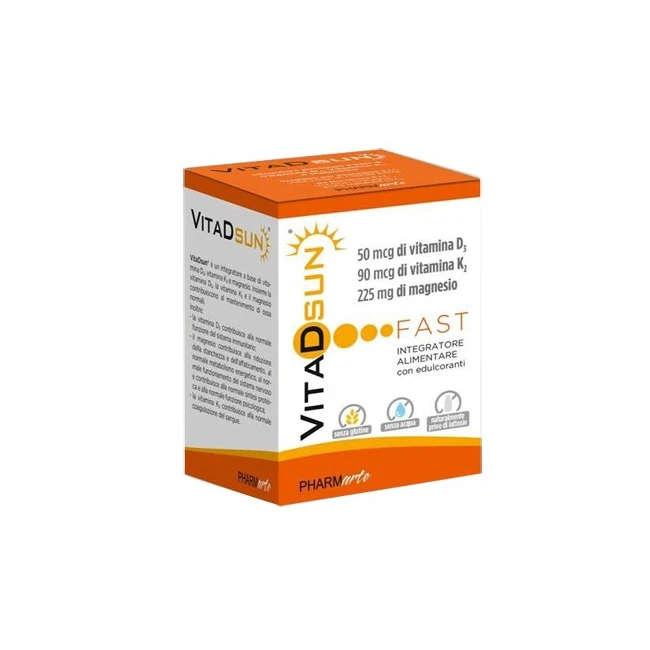 VitaDsun unisce le proprietà della vitamina D3, della vitamina K2 e del magnesio, nutrienti essenziali per la salute delle ossa, contribuendo anche a ridurre la stanchezza e a sostenere il normale funzionamento del sistema nervoso.Caratteristiche