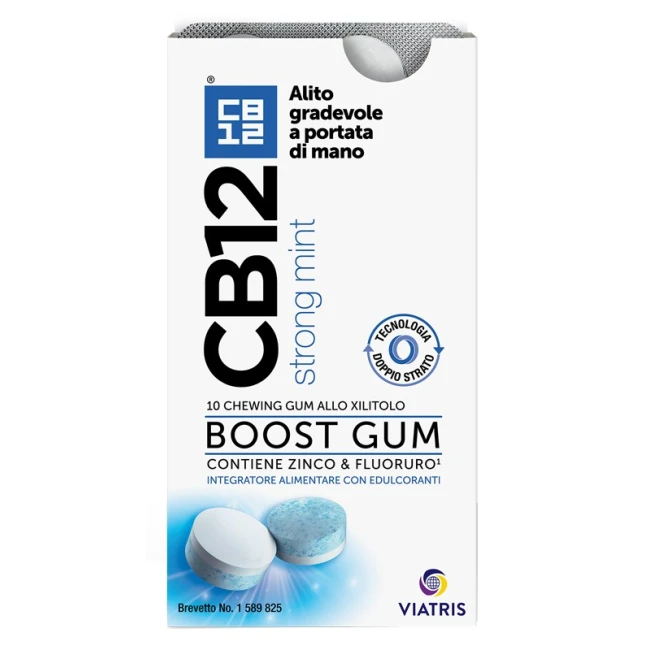 CB12 Boost Gum è un chewing gum senza zucchero che combina l'azione preventiva dello zinco contro l'alito cattivo e il fluoruro per la mineralizzazione dei denti. Questo prodotto è ideale come complemento all'igiene orale quotidiana.A cosa serve