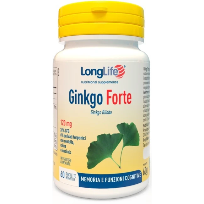 Longlife Ginkgo Forte è un integratore alimentare progettato per supportare le funzioni cognitive, la memoria e favorire la circolazione sanguigna e la salute del microcircolo.