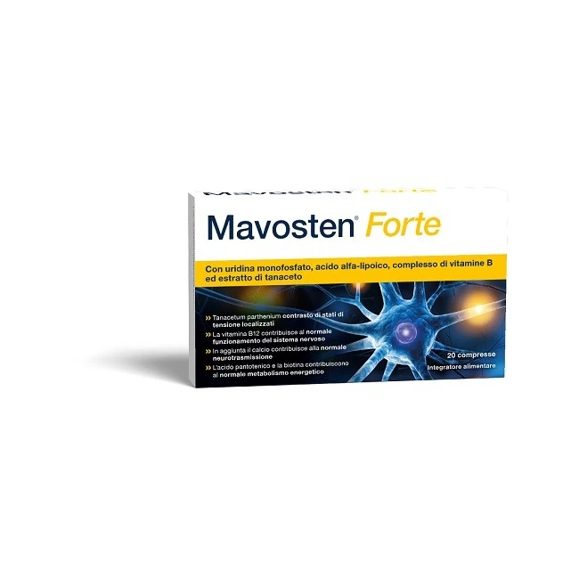Mavosten Forte è un integratore alimentare studiato per supportare il normale funzionamento del sistema nervoso, grazie alla sinergia di ingredienti essenziali come l'uridina monofosfato e acido alfa-lipoico.A cosa serve