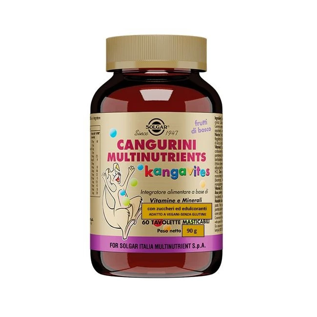 Le Tavolette Masticabili Solgar Cangurini contribuiscono a mantenere livelli ottimali di nutrienti per una crescita sana e attiva.Caratteristiche