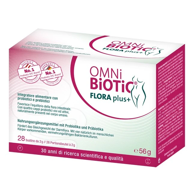 OMNi BiOTiC FLORA Plus è un integratore alimentare formulato per supportare l'equilibrio della flora intestinale grazie a un'accurata combinazione di probiotici e prebiotici.