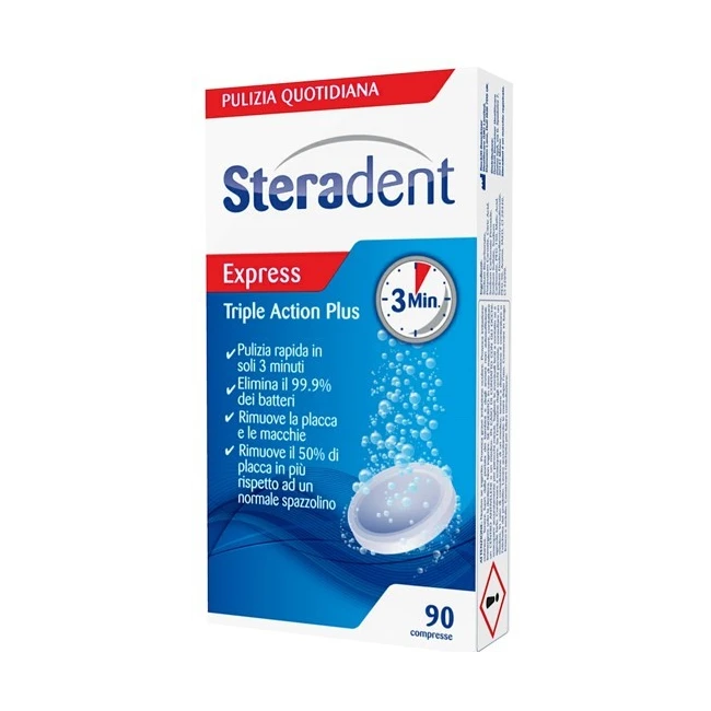 Triple action plus Compresse igienizzanti per dentiere sia totali che parziali.
