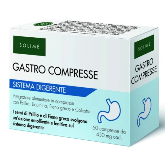 Le Gastro Compresse di Solimè sono un integratore alimentare appositamente formulato per supportare il benessere del sistema digerente. Contenenti ingredienti di alta qualità come Psillio, Liquirizia, Fieno greco e Colostro, questo prodotto è ideale per chi desidera un sollievo naturale e un apporto nutrizionale mirato.A cosa serve