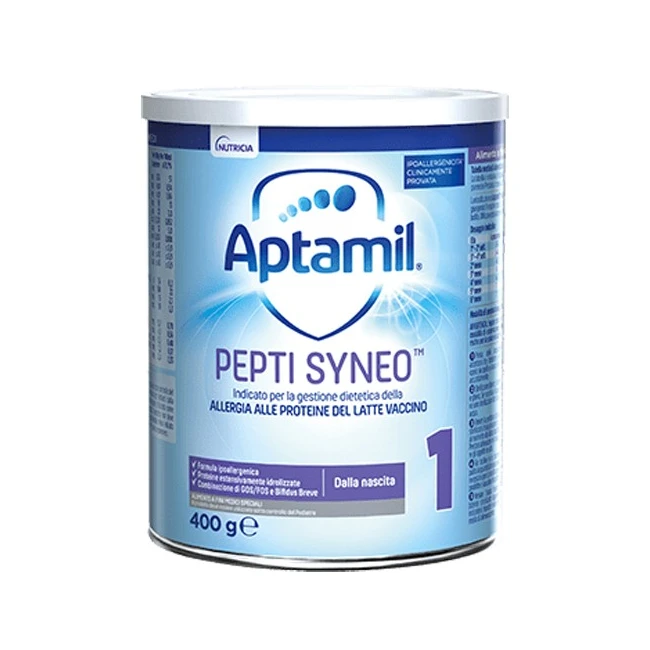 Aptamil Pepti Syneo 1 è un alimento dietetico a fini medici speciali formulato per i lattanti da zero a sei mesi con allergia alle proteine del latte vaccino. Grazie alla sua formula ipoallergenica e alle proteine estensivamente idrolizzate, risponde alle specifiche esigenze nutrizionali dei bambini in questa fascia d'età.