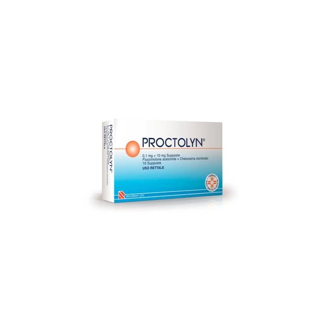 Proctolyn contiene due principi attivi: fluocinolone acetonide (glucocorticoide) che agisce contro le infiammazioni e chetocaina cloridrato (anestetico locale) che riduce la sensibilità nella zona in cui viene applicato.