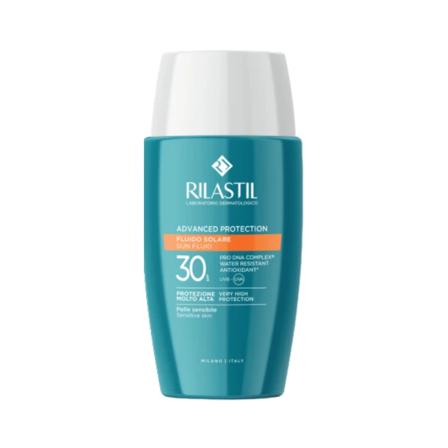 Rilastil Sun System Advanced Protection è un fluido solare ad alta protezione SPF50+ idratante fino a 8 ore, formulato per ridurre l'impatto ambientale sugli ecosistemi acquatici, ideale per tutti i tipi di pelle, anche sensibili.