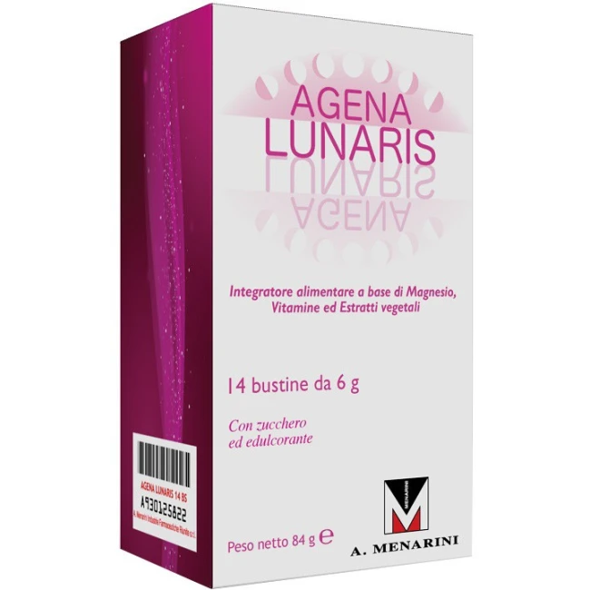 Menarini Agena Lunaris è un integratore alimentare formulato per contrastare i disturbi del ciclo mestruale, sfruttando la sinergia tra magnesio, vitamine e estratti vegetali.