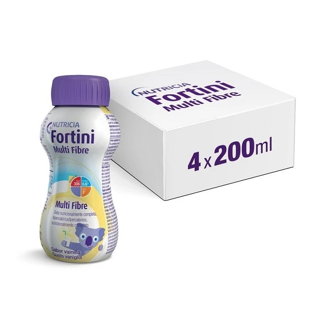 Fortini Multi Fibre è un alimento a fini medici speciali ipercalorico (1,5 kcal/ml), pronto da bere, al gusto vaniglia. È formulato per supportare l'alimentazione di bambini di età superiore a 1 anno in caso di stato nutrizionale carente e/o inappetenza. Grazie al mix di fibre (MF6) presente nella formula, contribuisce a regolarizzare la motilità intestinale.