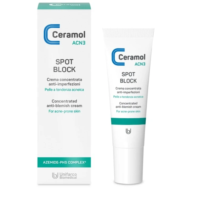 Specificamente formulato per il trattamento correttivo delle imperfezioni cutanee, Unifarco Ceramol Acn3 Spot Block agisce in modo mirato contro comedoni e segni secondari tipici della pelle acneica.