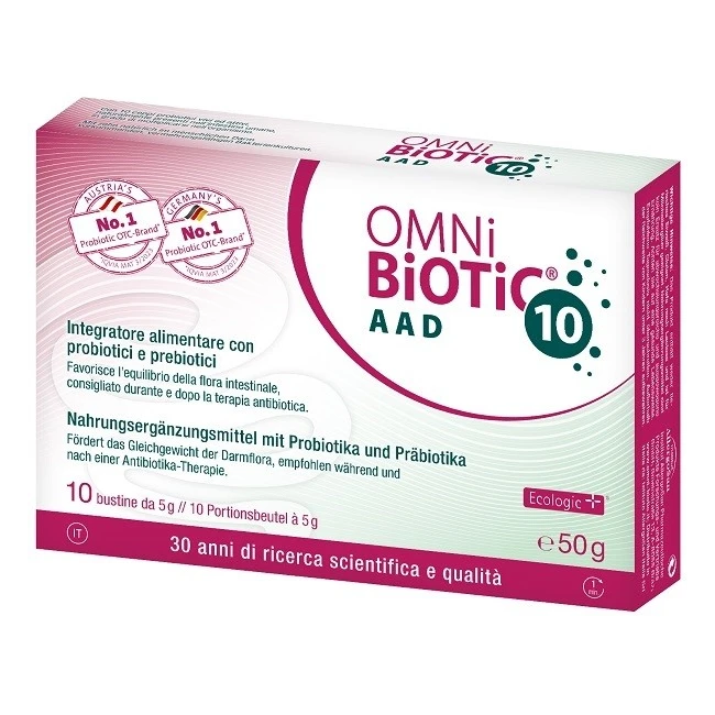 Se si assume OMNi-BiOTiC 10 AAD 2 volte al giorno, si raccomanda di farlo prima di colazione e di cena. Far trascorrere almeno 1 ora tra l’assunzione di OMNi-BiOTiC 10 AAD e l’antibiotico.