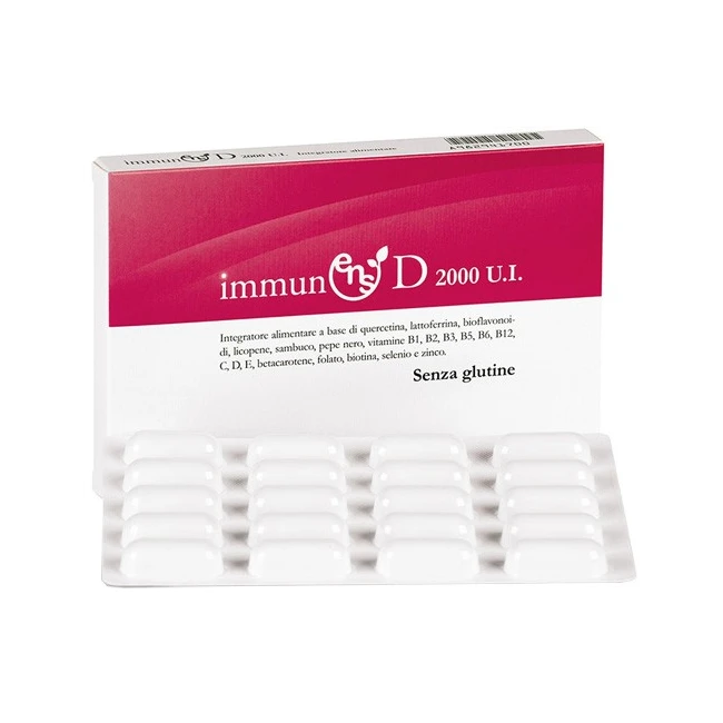 E. N. S. ImmunENS D 2000 UI è arricchito con quercetina, lattoferrina, bioflavonoidi, licopene ed un complesso vitaminico che favorisce una risposta immunitaria adeguata. Questo prodotto è privo di glutine e contiene ingredienti di alta qualità attentamente selezionati.Adatto per