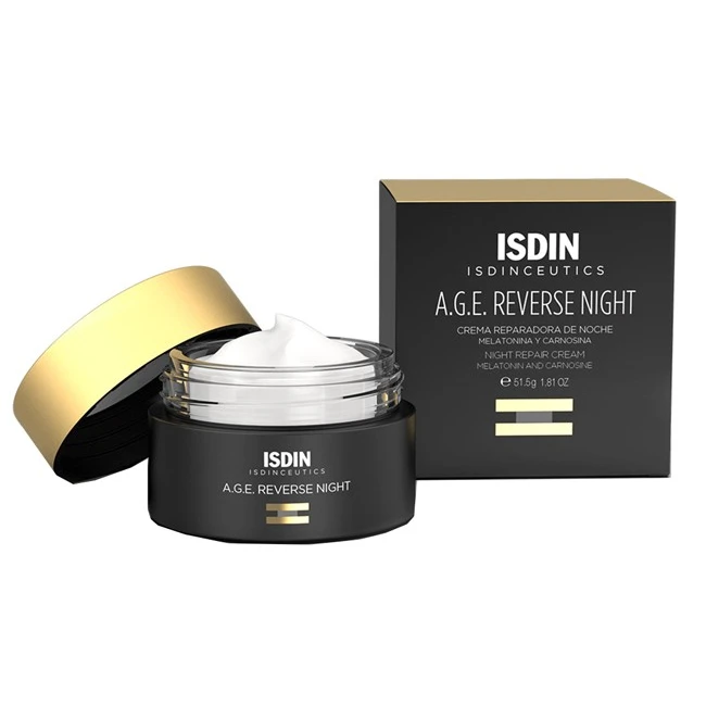 La crema viso da notte ISDINCEUTICS A.G.E. REVERSE è specificamente formulata per combattere i segni del tempo e migliorare l'aspetto della pelle durante il riposo notturno.
