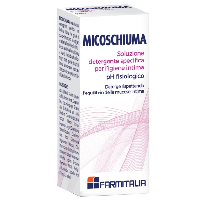 Micoschiuma Soluzione Detergente è un prodotto dermatologico la cui texture delicata deterge a fondo senza alterare l’equilibrio fisiologico delle zone intime, risultando particolarmente indicata in tutte quelle situazioni in cui si desidera associare un’azione detergente a un effetto igienizzante.