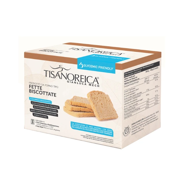 Queste fette biscottate proteiche di Tisanoreica contribuiscono a ridurre l’aumento di glucosio ematico post-prandiale, ed elevato contenuto di fibre per migliorare la salute intestinale. Senza glutine e con basso contenuto di zuccheri, sono indicate anche per chi ha particolari esigenze nutrizionali.