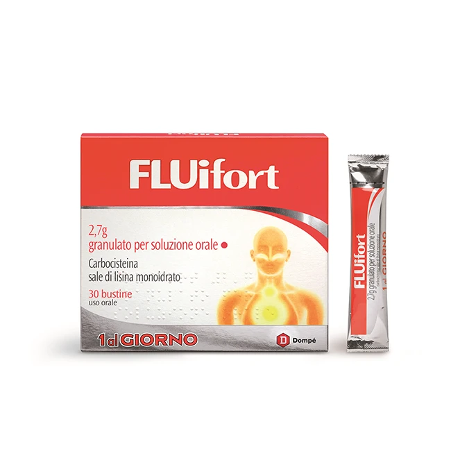 Fluifort è un medicinale mucolitico indicato per il trattamento della tosse e delle malattie acute e croniche delle vie respiratorie che contiene carbocisteina sale di lisina monoidrato, una molecola che agisce fluidificando il muco e facilitandone l'espettorazione.