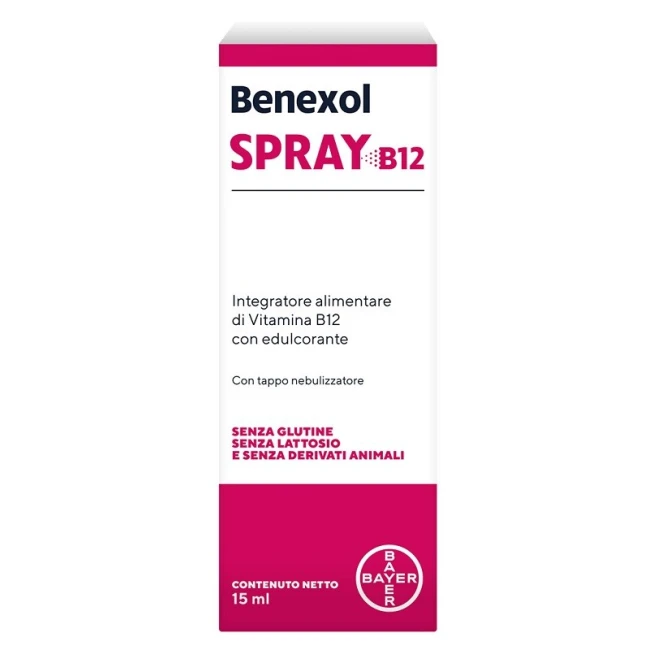 Benexol Spray B12 è un integratore alimentare progettato per supportare il normale funzionamento del sistema nervoso, il metabolismo dell’omocisteina e la formazione dei globuli rossi.A cosa serve