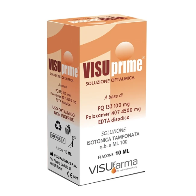 Visufarma Visuprime è una soluzione sterile, isotonica e tamponata a pH fisiologico. Comprende ingredienti attivi come Poloxamer 407, Poliquaternario 133 ed EDTA disodico, che contribuiscono a creare una barriera protettiva nell'occhio.Adatto per