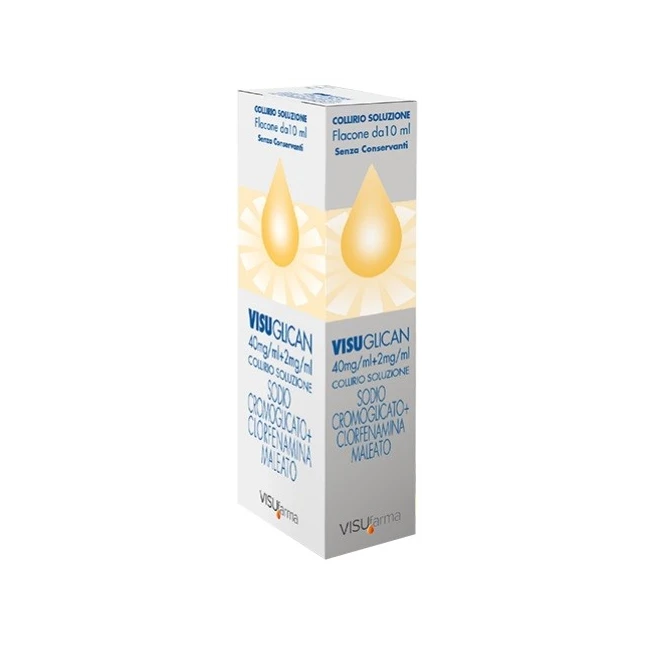 VISUGLICAN appartiene ad un gruppo di farmaci chiamati decongestionanti ed antiallergici e contiene due principi attivi: Sodio cromoglicato e Clorfenamina maleato.