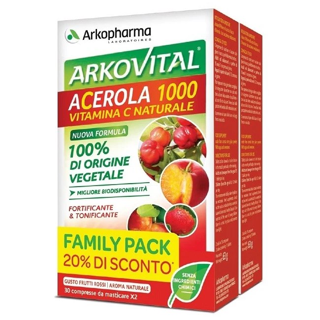 - Ogni compressa contiene 1000 mg di polvere di acerola.