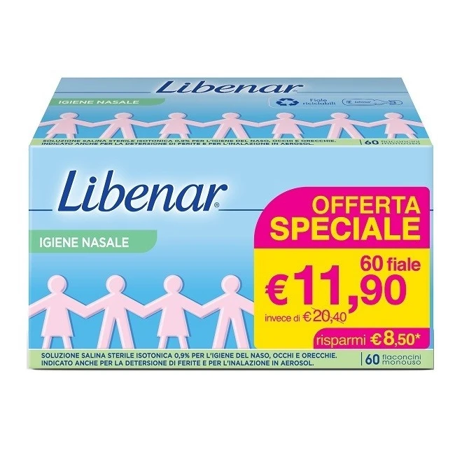 Dettagli Perrigo Libenar Soluzione Salina Isotonica 0,9% - Igiene Nasale in Flaconcini Monouso (60 x 5 ml)