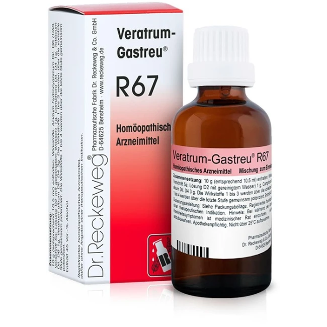 Reckeweg R67 è un medicinale registrato a base di ingredienti naturali con un contenuto di alcol del 45%. Non contiene glutine né lattosio.Ingredienti
