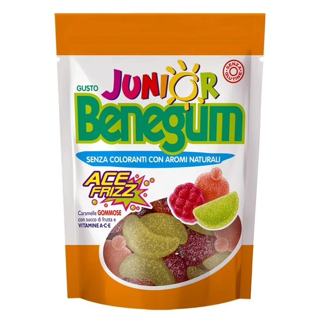Dettagli Perfetti Van Melle Benegum Junior Ace Frizz Caramelle Gommose Con Succo Di Frutta E Vitamine A C E 90 G