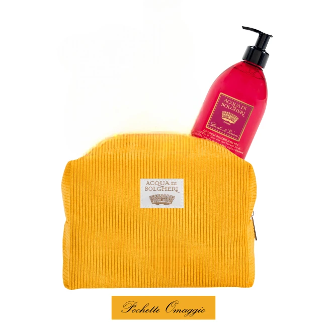 Set contenente 1 sapone liquido da 500 ml e 1 pochette in tessuto (colore variabile).