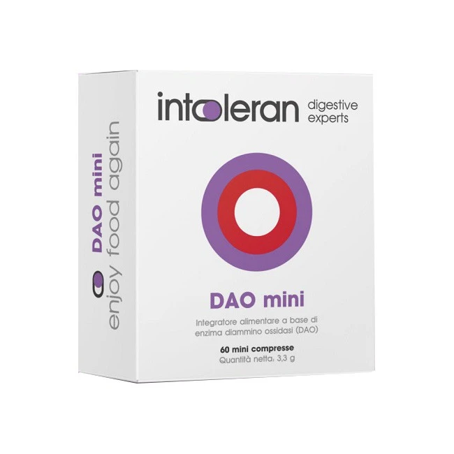 Intoleran DAO Mini è un integratore alimentare innovativo a base di enzima diammino ossidasi (DAO), formulato per supportare la gestione delle intolleranze alimentari.