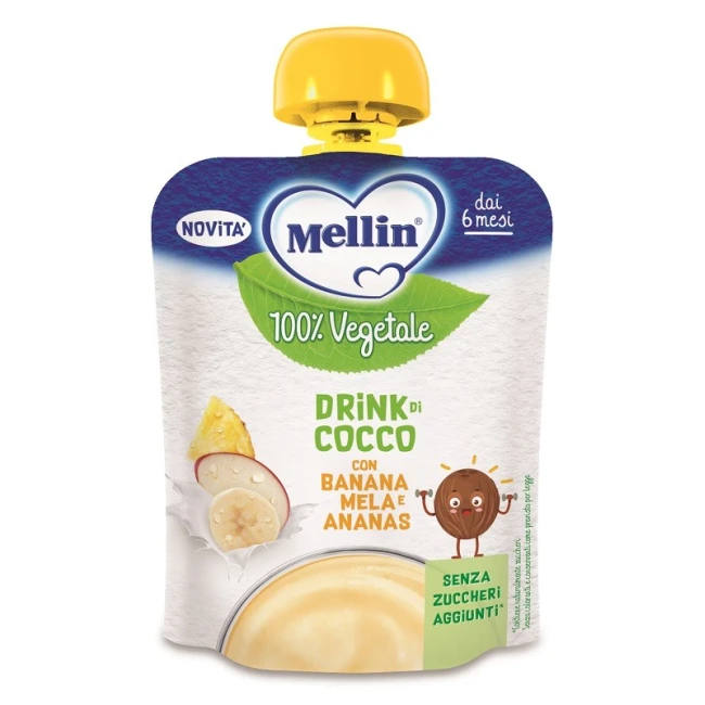 Il Mellin Pouch Frutta Tropicale al Cocco è un alimento per la prima infanzia, formulato con purè di frutta e bevanda di cocco. Indicato a partire dal 6° mese di vita, contribuisce a un'alimentazione varia e bilanciata, da introdurre seguendo il parere del pediatra.