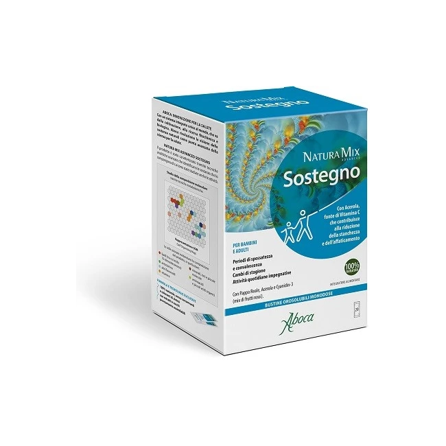 Aboca Natura Mix Advanced Sostegno è un integratore alimentare progettato per sostenere il sistema immunitario e contribuire alla riduzione della stanchezza e dell'affaticamento. È particolarmente utile durante i periodi di spossatezza, convalescenza, cambi di stagione e durante attività quotidiane impegnative.
