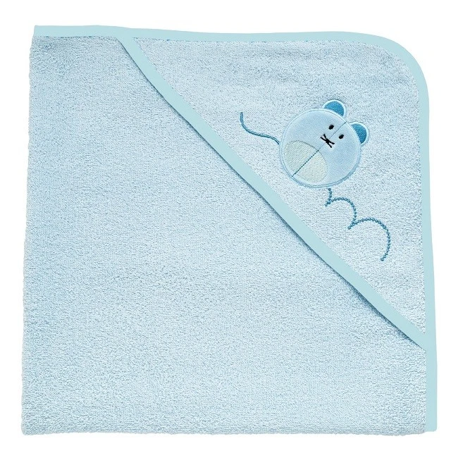 1 accappatoio quadrato con cappuccio - fantasia Topo, colore azzurro