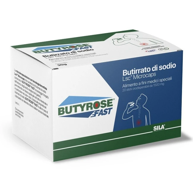 Butyrose Fast è un alimento a fini medici speciali, formulato con butirrato di sodio microincapsulato. È indicato per il trattamento dietetico delle colonpatie, contribuendo a supportare l'integrità della mucosa intestinale grazie alla tecnologia brevettata Lsc Microcaps. Questo processo di microincapsulazione protegge il butirrato di sodio dalla degradazione causata da acidi e enzimi gastrici, garantendo un rilascio graduale e mirato nel tratto intestinale, in particolare nel colon-retto.A cosa serve