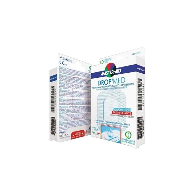 Dettagli Medicazione compressa autoadesiva dermoattiva ipoallergenica aerata master-aid drop med 10x8 5 pezzi