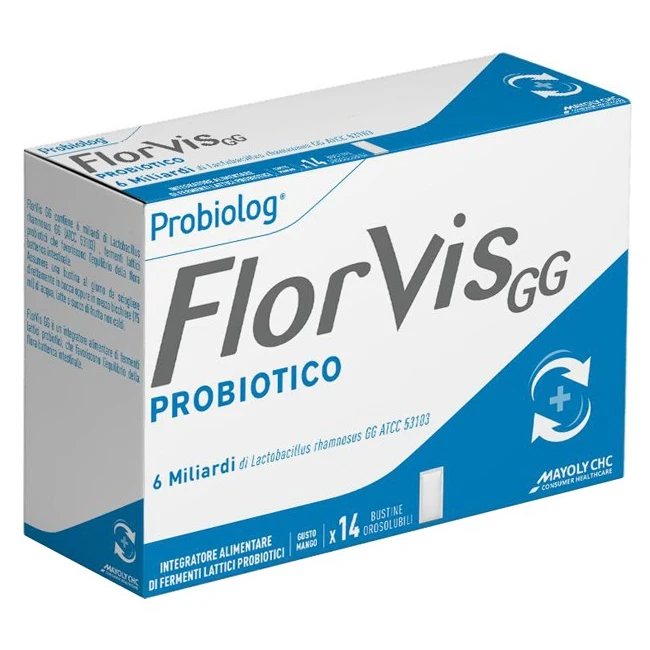 FlorVis GG è un integratore alimentare a base di probiotici che promuove l'equilibrio della flora intestinale, contribuendo al benessere gastrointestinale.