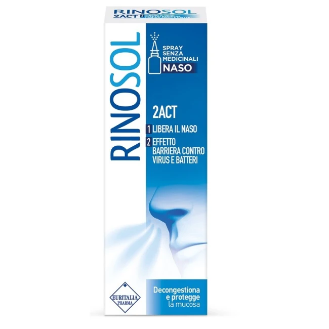 Rinosol 2 Act è un dispositivo medico pensato per alleviare la congestione e l'irritazione della mucosa nasale. È ideato per gestire sintomi associati a sindromi influenzali, raffreddore, riniti allergiche e sinusiti, sia acute che croniche.A cosa serve